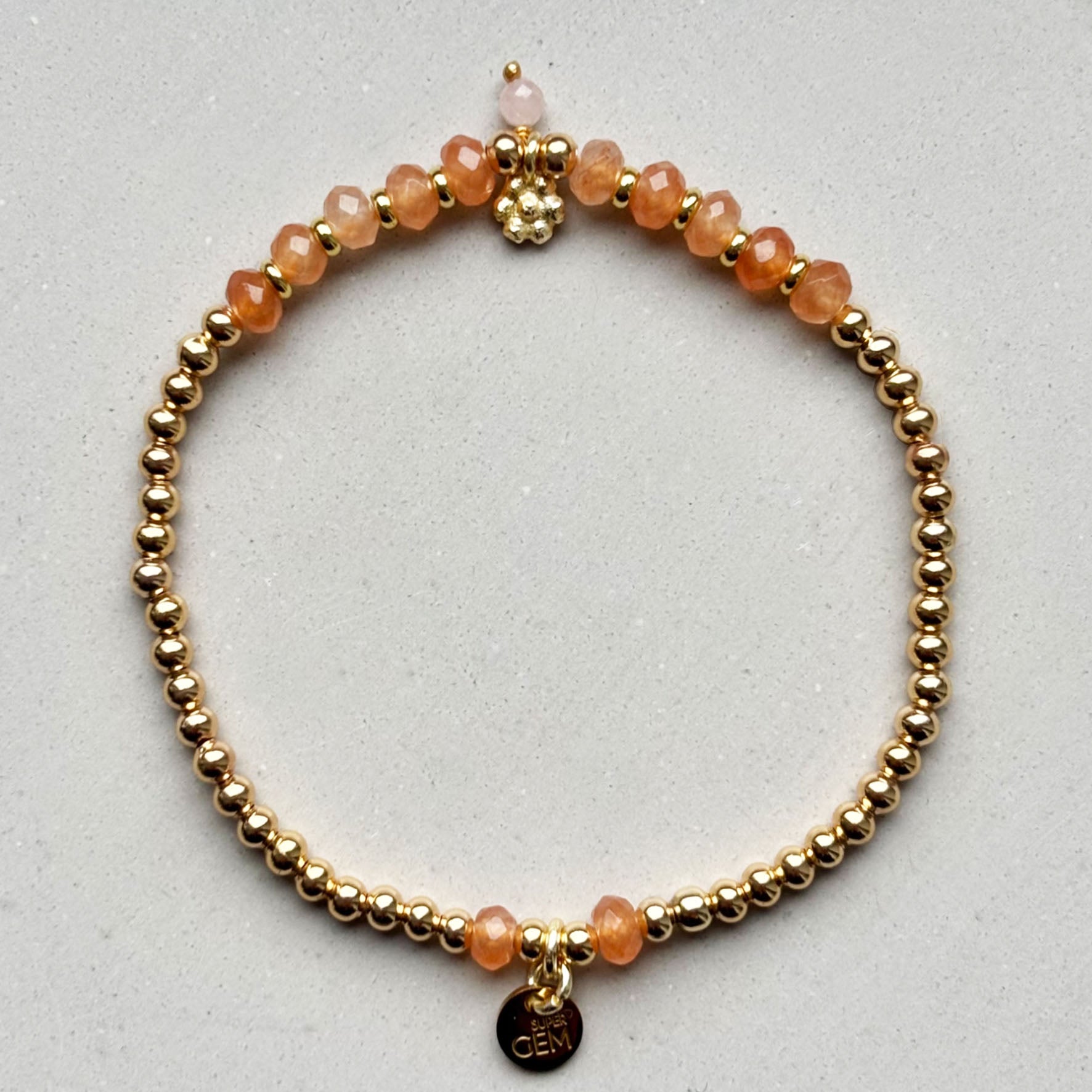 Das Super Gem Armband mit Tourmalin Anhänger besteht aus 3 mm vergoldeten Perlen und linsenförmigen Achaten.