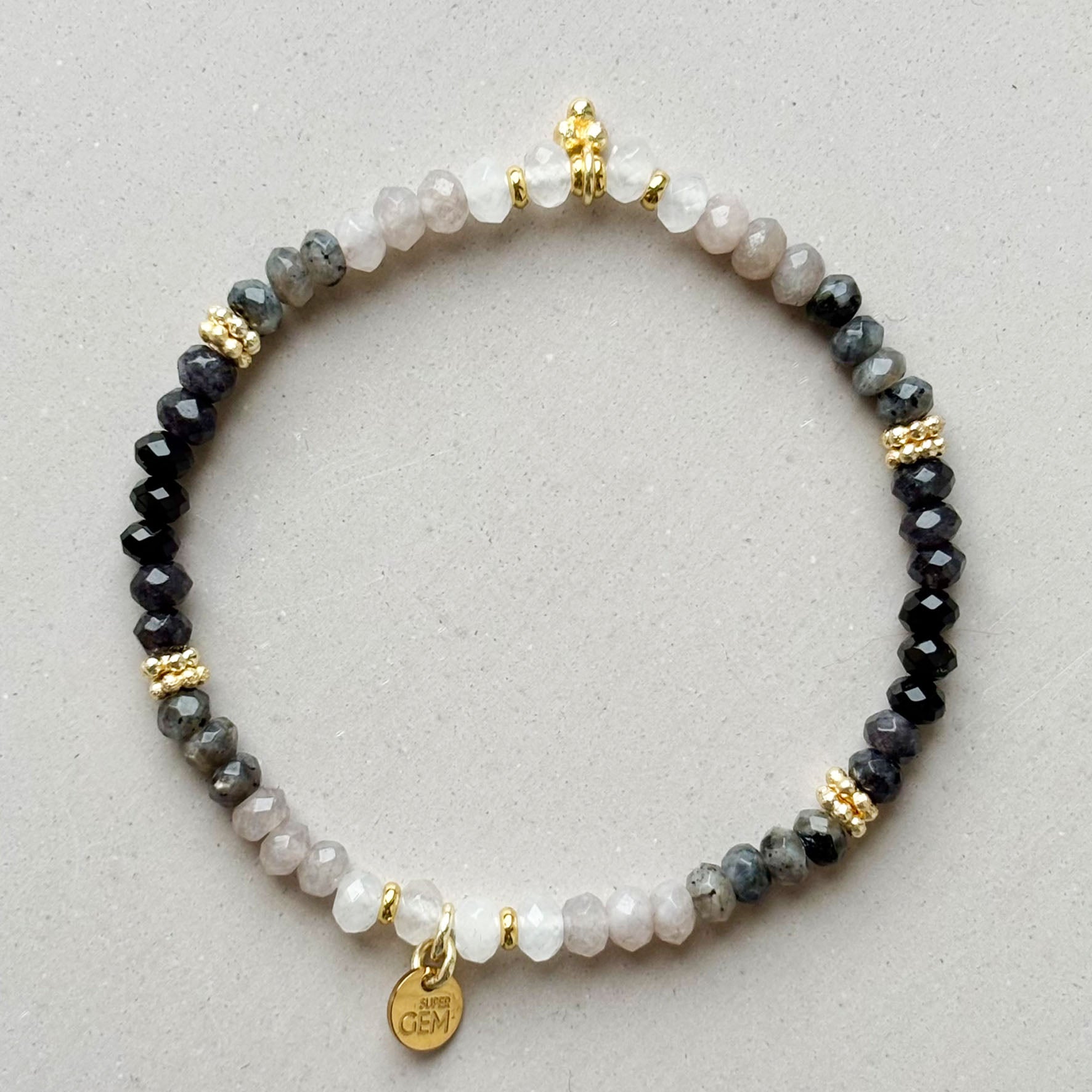 Das Super Gem Armband besteht aus 4 mm geschliffenen Achat Rocaille Perlen und vergoldeten Spacern .