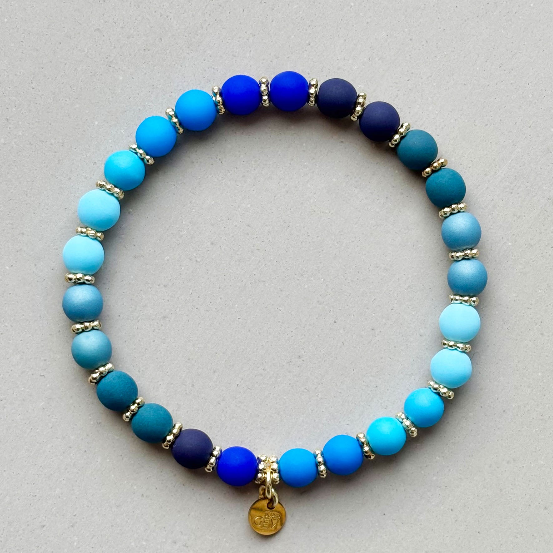 Das Super Gem Armband besteht aus 6 mm Glasperlen und vergoldeten Spacern.
