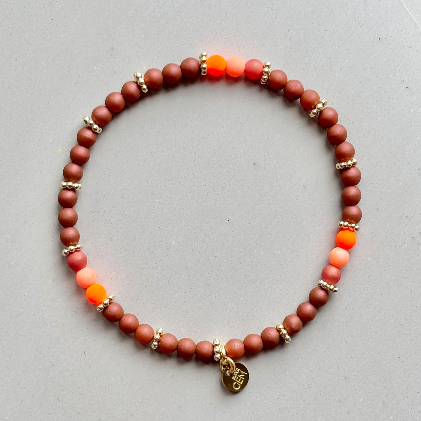 Das Super Gem Armband besteht aus 4 mm Glasperlen und vergoldeten Spacern.