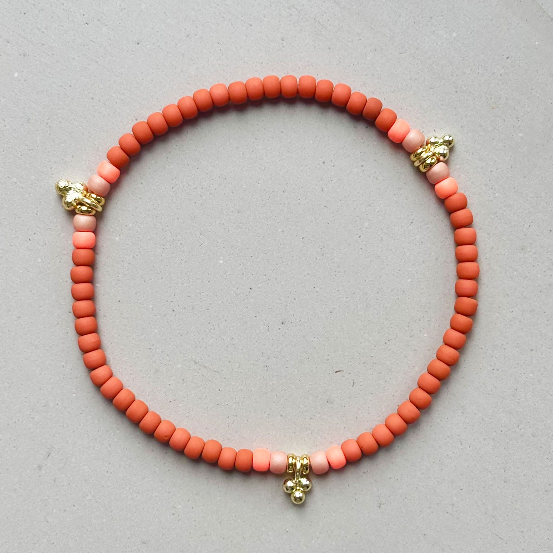 Das Super Gem Armband besteht aus 3 mm Glas-Rocailles Perlen und vergoldeten kleinen Anhängern.