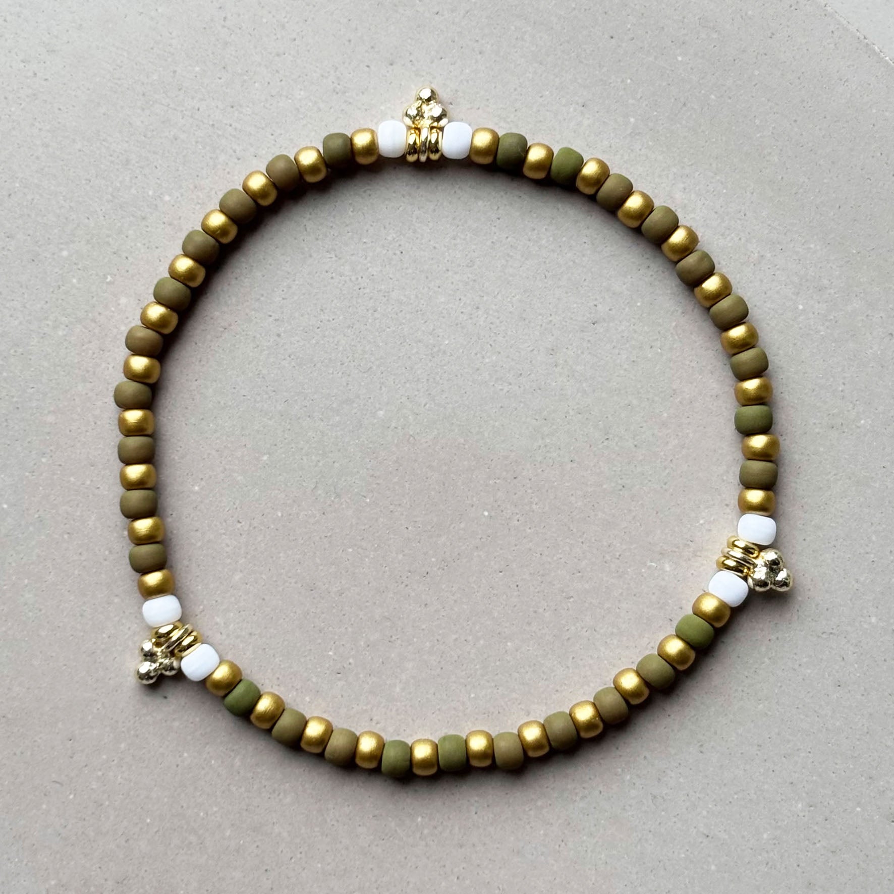 Das Super Gem Armband besteht aus 3 mm Glas-Rocailles Perlen und vergoldeten kleinen Anhängern.