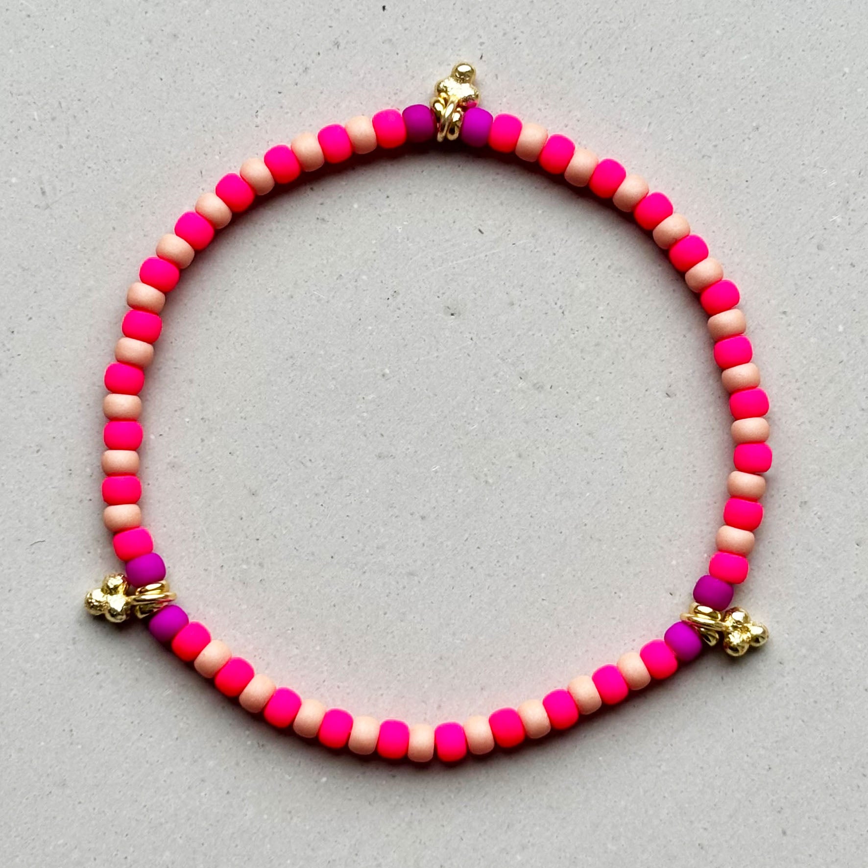 Das Super Gem Armband besteht aus 3 mm Glas-Rocailles Perlen und vergoldeten kleinen Anhängern.