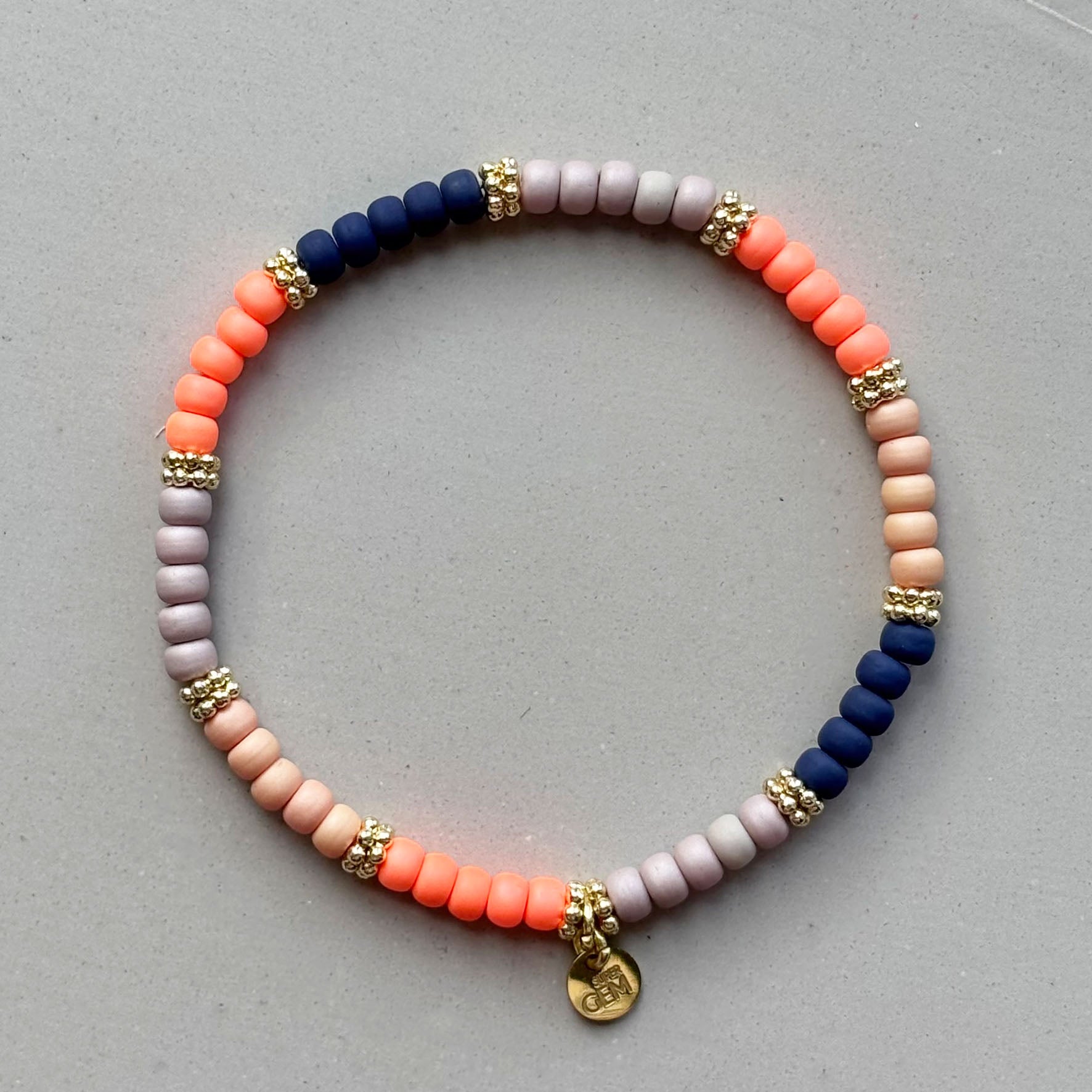 Das Super Gem Armband besteht aus 4 mm Glas-Rocailles Perlen und vergoldeten Spacern.