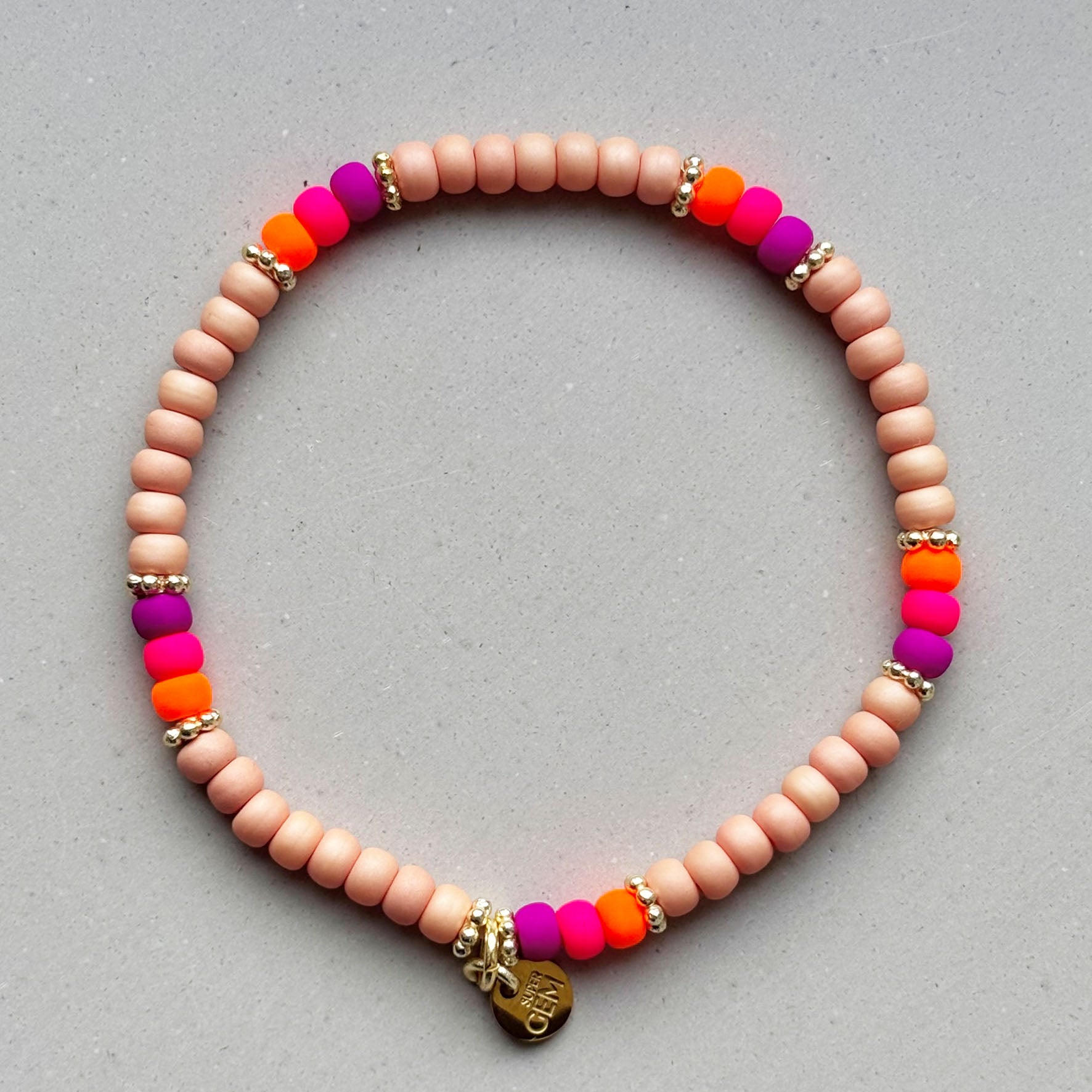 Das Super Gem Armband besteht aus 4 mm Glas-Rocailles Perlen und vergoldeten Spacern.